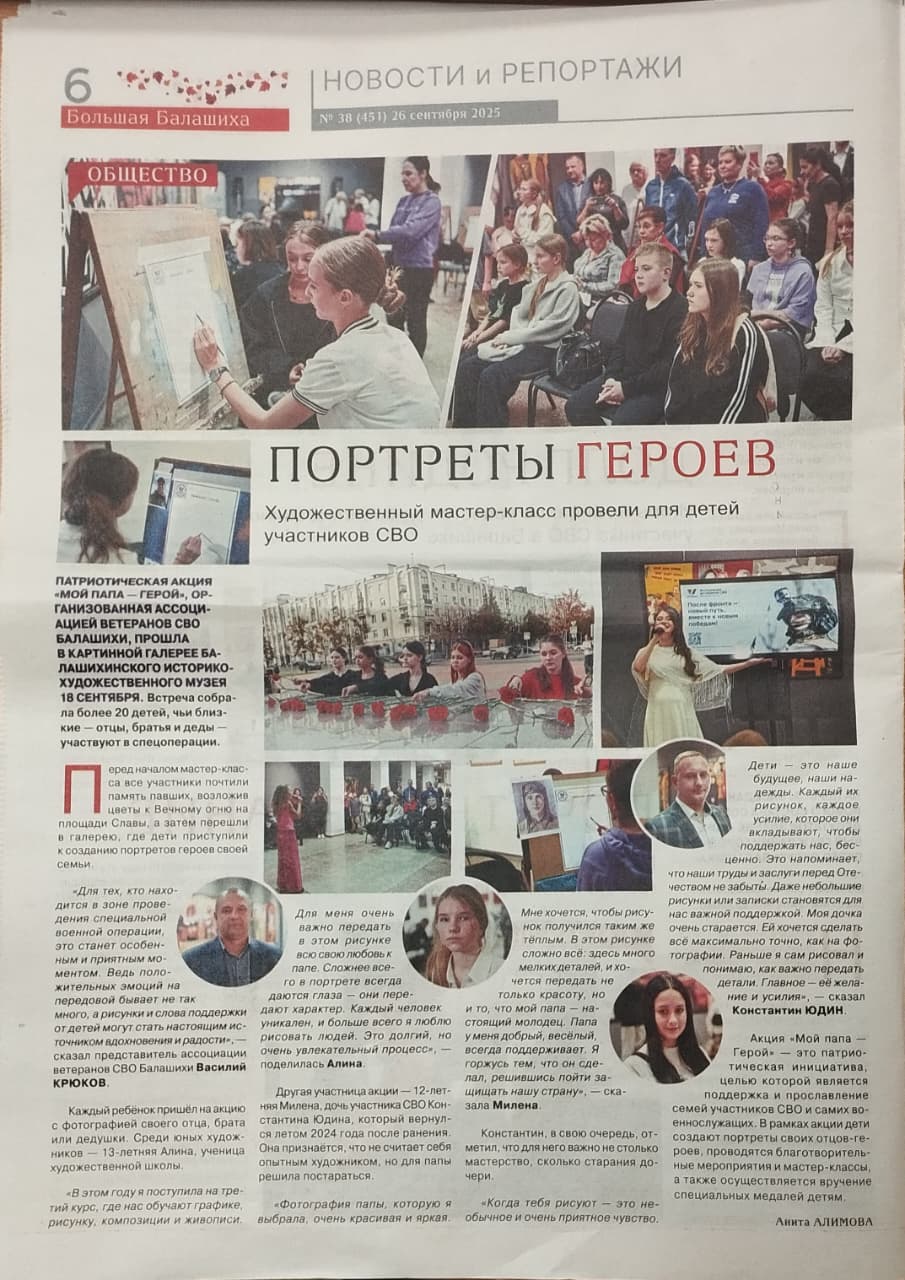 Ученики и сотрудники, чьи родители и родственники являются участниками СВО, попали в статью газеты "Большая Балашиха".