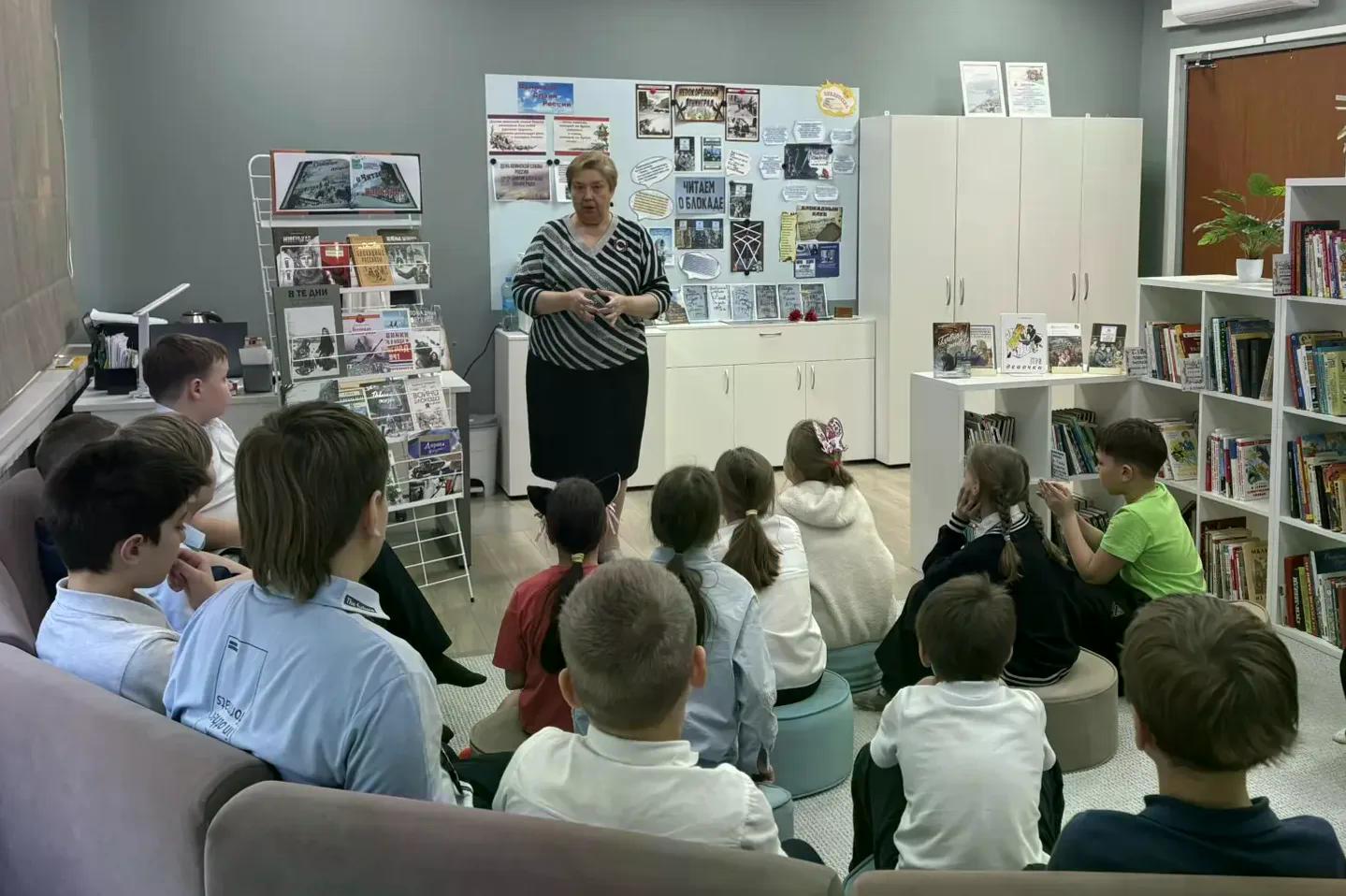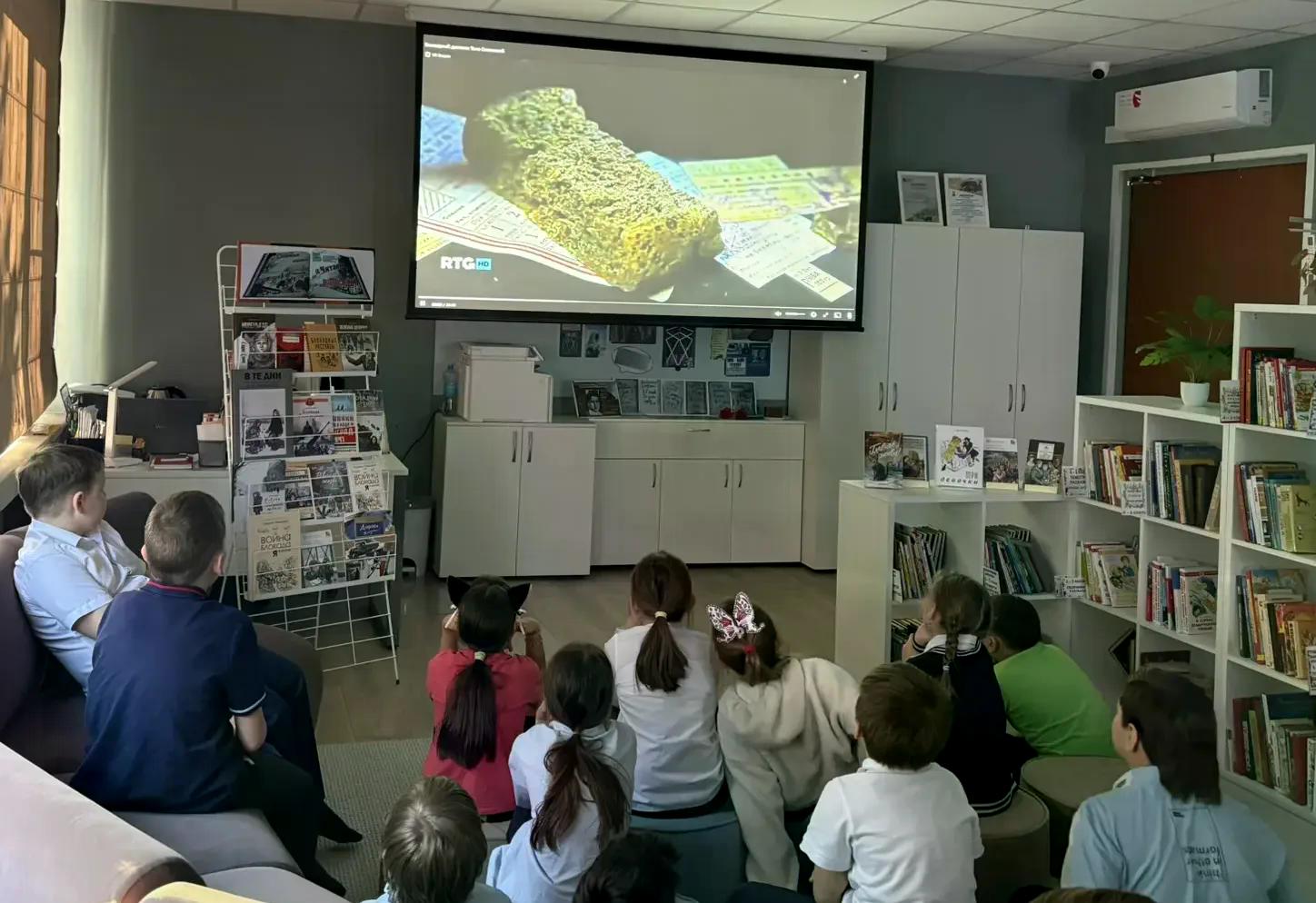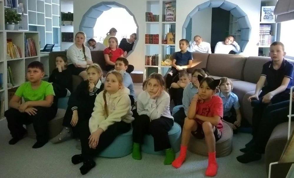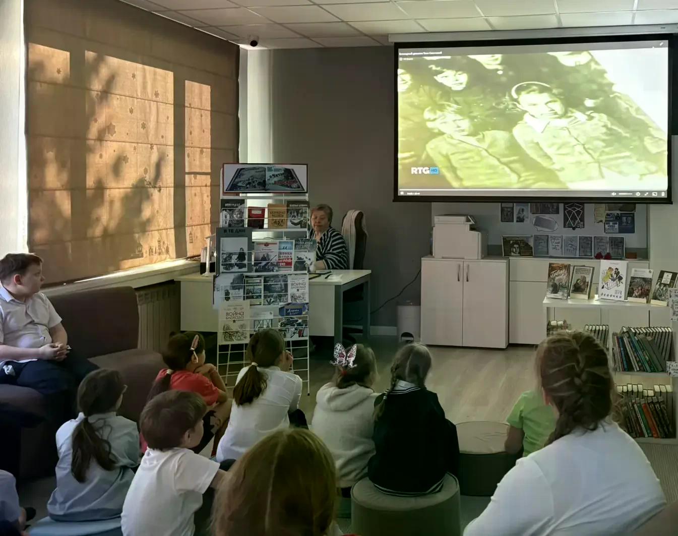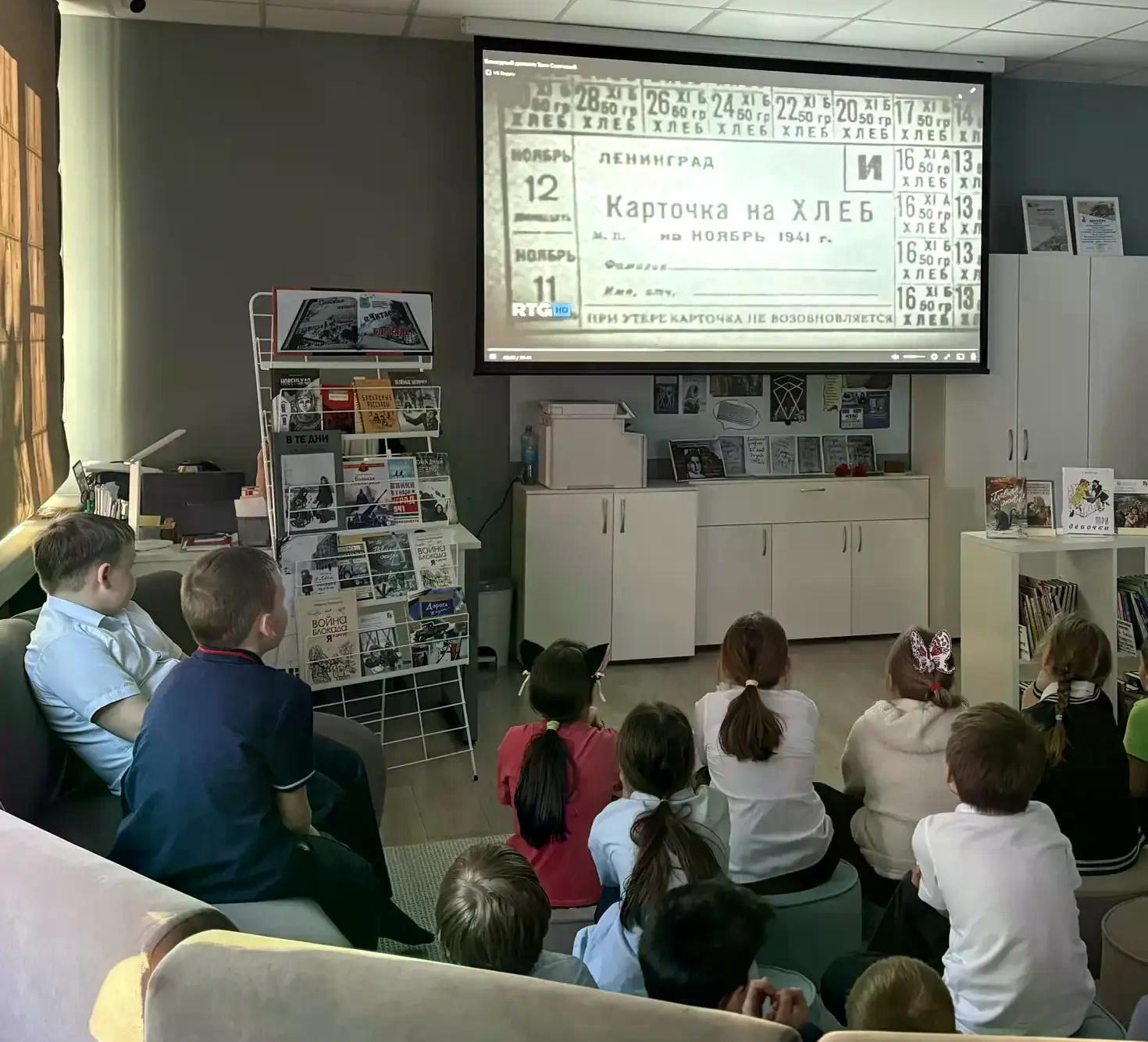 Сегодня 3"А" и 3"Б" классы посетили библиотеку - просмотр фильма о блокадном Ленинграде и Тане Савичевой.