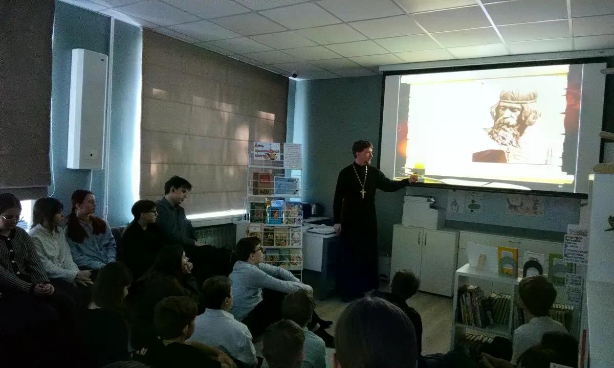 Мероприятие к Дню Православной книги (14 марта) сегодня провел отец Дмитрий для учащихся 5-9 классов.