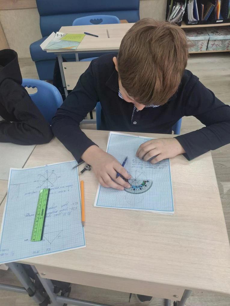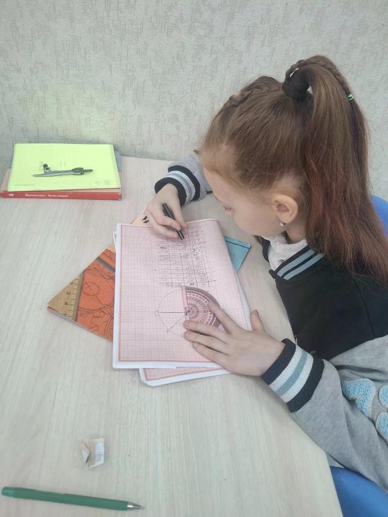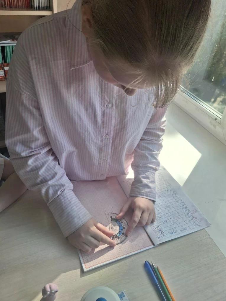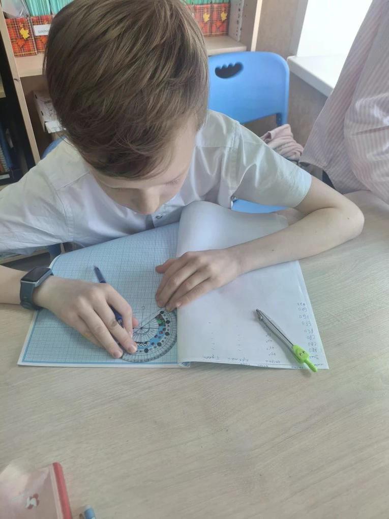 4"Б" класс - урок математики. Изучаем построение углов, определение их видов и учимся их измерять.